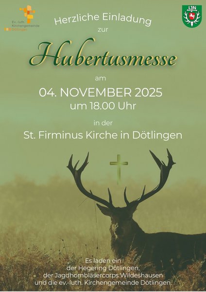 Die Hubertusmesse findet am 04. November 2025 um 18 Uhr in Dötlingen statt