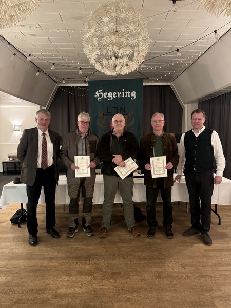 Ein besonderer Höhepunkt des Abends waren die Ehrungen langjähriger Mitglieder. Für ihre Treue zum Hegering wurden ausgezeichnet: Otmar Wolters für 25 Jahre Mitgliedschaft sowie Manfred Scheele, Hans-Jürgen Luthardt und Kurt Spille für jeweils 40 Jahre. Auf beeindruckende 50 Jahre Mitgliedschaft kann Kurt Strudthoff zurückblicken. Der Kreisjägermeister Friedrich Hollmann dankte allen Geehrten für ihr langjähriges Engagement und ihre Verbundenheit zur Jagd und zum Naturschutz.