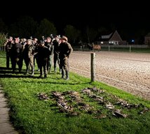 In einer Fahrgemeinschaft ging es in Richtung Emmerthal. In Emmerthal angekommen, wurden erst einmal die Zimmer im Gasthaus „Zum Ruhberg“ bezogen. Um 17 Uhr wurde gemeinsam mit den jeweiligen Revierinhabern gegrillt und es ergaben sich interessante Gespräche.  Im Anschluss an das Essen wurden die Jäger des Hegeringes Rastede Nord auf die Reviere verteilt und es erfolgte die jeweilige großzügige Freigabe. Bevor es allerdings auf den Ansitz ging, zeigten die Revierinhaber ihren Gästen die Reviere. Die Ammerländer Jäger bekamen so einen Eindruck von den Problemen, die das Schwarzwild in den landwirtschaftlichen Flächen anrichtet. Im Anschluss brachten die Revierinhaber ihre Gäste auf die jeweiligen Ansitzeinrichtungen. Geplant war es bis mindestens 1:00 Uhr anzusitzen. Ein Rasteder Jäger erlegte eine Überläuferbache und ein anderer konnte einen Waschbären erlegen. Direkt im Anschluss an den Ansitz wurde die Strecke gelegt. Das Wetter und die Stimmung waren gut, so dass die Nachtruhe dementsprechend kurz ausfiel.