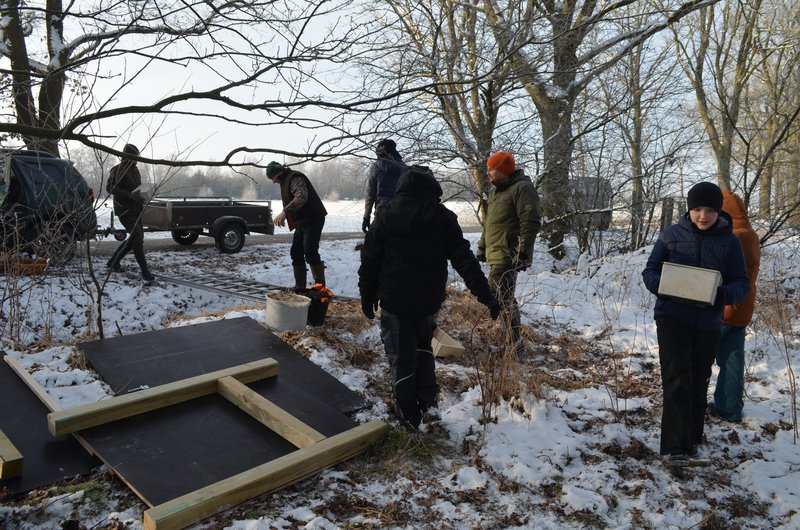 Am 30. November 2016 traf sich die Jugendgruppe „Die Falkenaugen“ zum Bau einer Fasanenschütte. Es sollte eine in die Jahre gekommene Schütte erneuert werden.