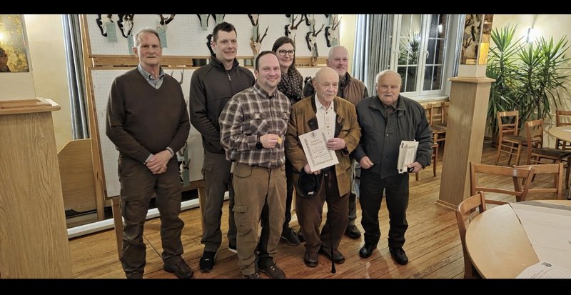 Highlight des Abends war sicherlich die Ehrung unseres Waidgenossen Dr. Hans-Hinrich Schmieta für sage und schreibe 70-jährige Verbandsmitgliedschaft... ein Jubiläum, dass leider nur extrem selten erreicht wird.