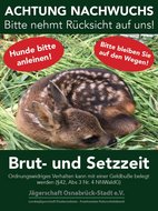 Auch der Hegering Osnabrück West weist auf die Notwendigkeit zur Rücksichtnahme zum Schutz der freilebenden Tiere hin