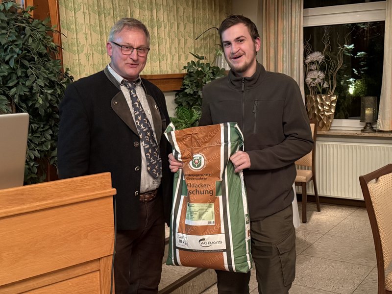 Der Hegering Wiefelstede konnte auf der Versammlung das 200 Mitglied begrüßen und überreichte Tamme Wilkens einen Sack Saatgut für Blühflächen.