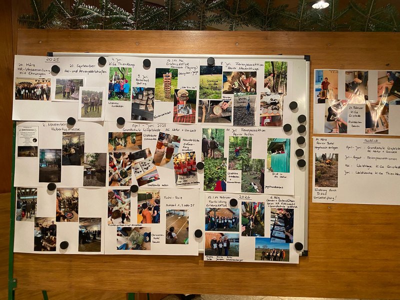 Der Hegeringleiter Michael Sander ließ das Jagdjahr 2025 in seinem Bericht Revue passieren. Michael blickte auf teilweise gute Hasenstrecken zurück, ebenfalls auf die positive Tendenz beim Fasan. Die Sicherheit im Umgang mit der Waffe stellte er besonders heraus. Michael kommentierte den Streckenbericht bildlich anhand einer ppt. Der Kassenführer mit den Kassenprüfern einschl. der Obleute führten ihre Berichte. Die Versammlung wurde durch die Jagdhornbläser musikalisch begleitet.