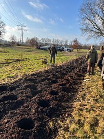 Die Fläche wurde von der Familie Patrick Zemke zur Verfügung gestellt. Die Pflanzaktion erfolgte durch engagierte Jägerinnen und Jäger des Jagdbezirks Kayhauserfeld.