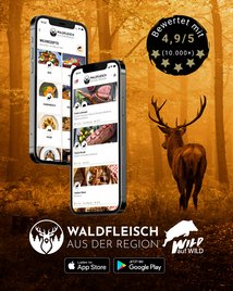 Heimisches Wildfleisch ist zwar ganzjährig verfügbar, unterliegt aber saisonalen Schwankungen, denn das Angebot variiert und orientiert sich an Wildvorkommen und gesetzlich festgelegten Jagdzeiten. Wer zu Weihnachten ein festliches Wildgericht auf den Tisch bringen möchte, sollte frühzeitig zugreifen, denn die Nachfrage ist gerade in der Advents- und Festtagszeit besonders hoch. Erster Ansprechpartner für Wildfleisch aus den heimischen Revieren ist die Jägerschaft, denn Wildbret kauft man am besten direkt beim Jäger vor Ort. Für Verbraucher, die kurz vor dem Fest auf der Suche nach regionalem Wildfleisch sind, gibt es dabei eine smarte Lösung – die Waldfleisch-App: Hier findet er Wildfleisch direkt vom Jäger aus der Region und zudem hunderte köstliche Wild-Rezepte.