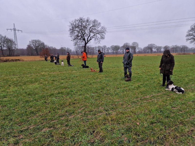 Beim jüngsten Vorbereitungskurs stand erneut der Grundgehorsam im Fokus. Fußarbeit, Sitz, Platz und sicheres Abrufen wurden weiter gefestigt. Ergänzend wurde erstmals das Verhalten beim Schuss trainiert. Die Hunde wurden behutsam an die Situation herangeführt, mit dem Ziel, auch hier ruhig und führig zu bleiben. Ein wichtiger Schritt für die weitere Ausbildung unserer Jagdhunde – und für eine waidgerechte Jagdausübung!