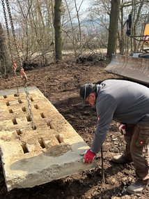 In Immenrode standen mehrere Arbeitseinsätze auf dem Programm. Dazu gehörten das Schneiden von Sträuchern und Bäumen, das Aufsammeln der Schrotbecher als Beitrag zum Umweltschutz sowie das Aufstellen eines Containers zur Lagerung unserer Großbestellung an Tontauben. Außerdem wurden die Skeetmaschinen auf Flugbahn und Geschwindigkeit gemäß der DJV Schießvorschrift eingestellt. Das bekannte Foto mit dem Hula Hoop Reifen zeigt anschaulich, wie präzise dabei gearbeitet wurde.
