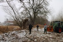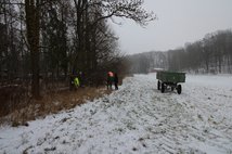 Bei angenehmen Temperaturen trafen sich deshalb elf Teilnehmer, Landwirte, Jäger und Jagdhelfer in der Gemarkung zum Pflegeeinsatz. Mit "Manpower", Motorsägen, Watthosen und schwerem Gerät wurde in einem vierstündig dauernden Einsatz die Pflegemaßnahmen durchgeführt.