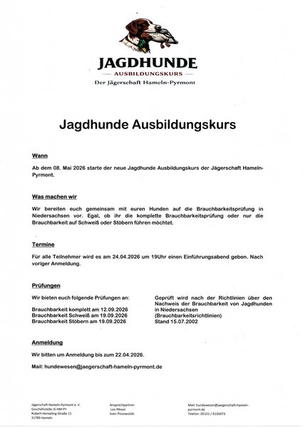 © Jägerschaft Hameln-Pyrmont e.V. Zur Desktop-VersionDatenschutzerklärung