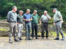 Zum 50 jährigen Jubiläum des Wild- und Freizeitparks Willingen (www.wildpark-willingen.de) reiste das „Bläserkorps Tannengrund“ der Kreisjägerschaft Holzminden ins schöne Sauerland. Das Bläserkorps aus der Solling-Vogler-Region folgte gerne der Einladung von Parkbesitzer Manfred Kreer, um das Fest musikalisch mit zu gestalten. Bei schönstem Sommerwetter überreichte der erste Vorsitzende Friedhelm Schmidtmann einen Jubiläumsteller und eine CD mit bekannten Jagdmelodien. Der Fanfarenzug Willingen sowie die ortsansässigen Jagdhornbläser trugen ebenfalls zum Gelingen der Veranstaltung bei. Jagdhunde und Greifvögel wurden präsentiert und ihre vielseitigen Aufgaben erklärt. Immer wieder wurden bekannte Jagdstücke und Jagdsignale geblasen. Für das leibliche Wohl hatte Gastgeber Manfred Kreer bestens gesorgt und somit wurde die Veranstaltung ein gelungenes Fest, das bis spät am Abend andauerte. Ein Teil der Bläser übernachtete im angrenzenden Gästehaus und besuchte nach dem Frühstück noch die Glasbläserei in Willingen und machte einen kurzen Abstecher zum Diemelsee. Ein herzliches Dankeschön für die Einladung und Bewirtung geht an Parkbesitzer Manfred Kreer. "Ein Besuch in Willingen lohnt sich allemal" so Vorsitzender Friedhelm Schmidtmann und soll vom „Bläserkorps Tannengrund“ auf jeden Fall wiederholt werden.