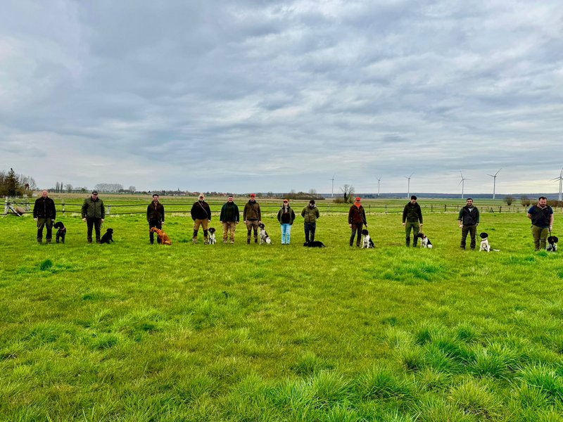 Ob Kleiner Münsterländer, Deutsch Drahthaar oder auch Labrador Retriever, eine bunte Mischung aus Jagdhunden möchte mit ihren Haltern dieses Jahr zum brauchbaren Jagdhund ausgebildet werden. Dabei werden sie von den Ausbildern Mareen Dyczka und Bastian Lehmann tatkräftig unterstützt. Beiden ist es immer ein großes Anliegen, die Jagdhundgespanne auf die Prüfung vorzubereiten.