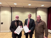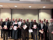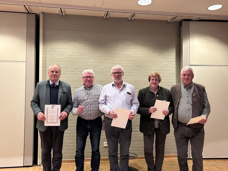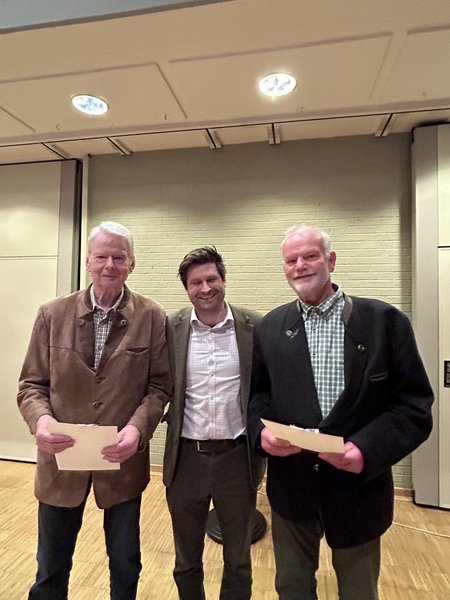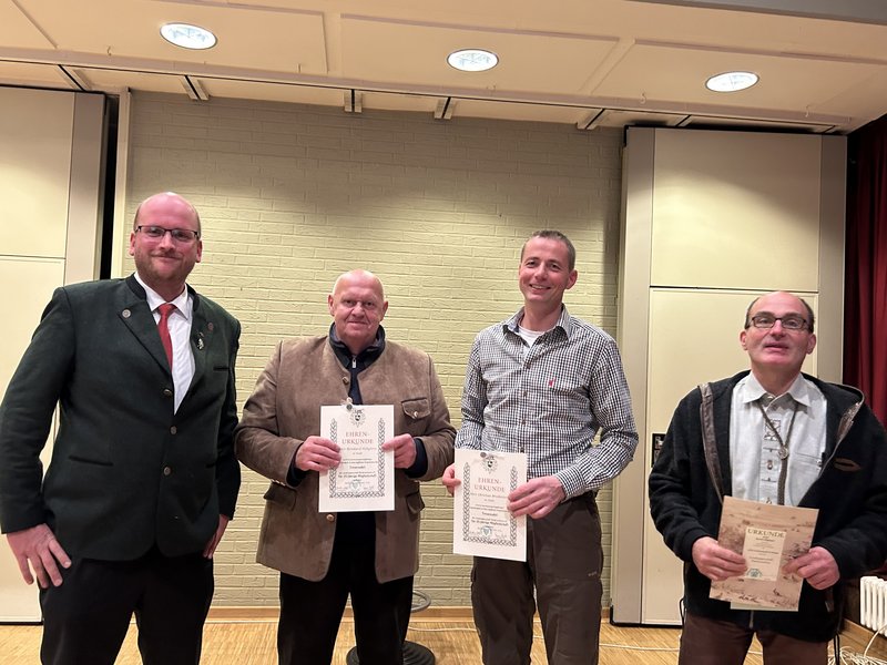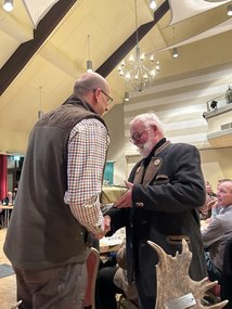 Der Bläserobmann Martin Last berichtete von den Aktivitäten der vier Meller Jagdhornbläsergruppen. Dabei hob er besonders die Jubiläen „35 Jahre Meesdorfer Fuchsbläser“ und „40 Jahre Bläsergruppe HR Oldendorf“ hin. Die Bläsergruppe „Grönegau“ hat erfolgreich am Landeswettbewerb teilgenommen und richtet am 1.11.2025 im Meller Ortsteil Neuenkirchen die Hubertusmesse aus. Nach seinem Bericht ehrte Martin Last zahlreiche Jagdhornbläserinnen und -bläser für ihre langjährige Mitgliedschaft in einer der Meller Bläsergruppen. Er freute sich besonders, die Gründungsmitglieder der „Bläsergruppe HR Oldendorf“, Karl-Heinz Thölmann, Horst Kleinwächter, Helmut Waldkötter und Erwin Siefker Bläsernadel f. 40 Jahre zu ehren.