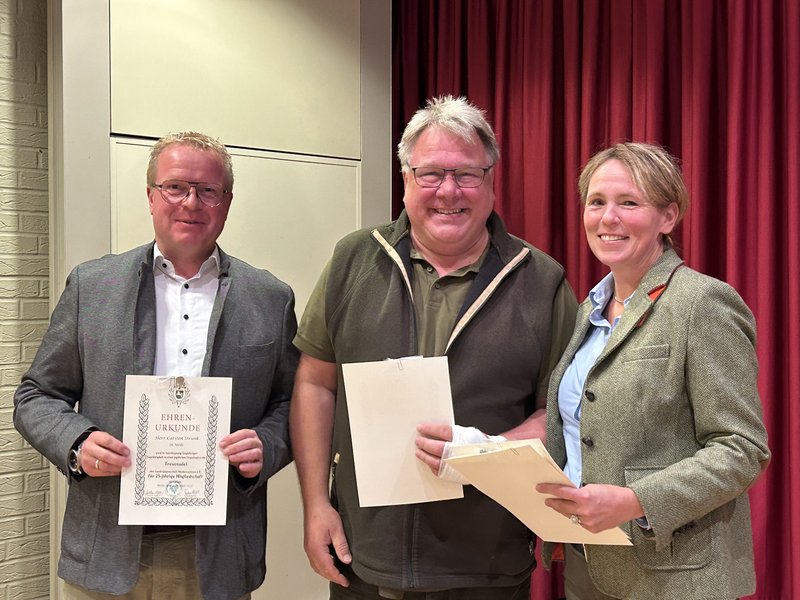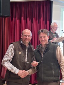 Mit dem Signal „Begrüßung“ eröffneten die zahlreich erschienen Jagdhornbläserinnen und Jagdhornbläser die Herbstversammlung der Jägerschaft Melle. Danach machte der JS-Vorsitzende Matthais Metting Ausführungen zu aktuellen Themen. Die Hasenbesätze werden in verschiedenen Revieren durch die Myxomatose stark dezimiert. Er forderte, dass die Hasen in betroffenen Revieren nicht bejagt werden. Zum Schutz von Bodenbrütern ist weiterhin eine intensive Bejagung der Prädatoren erforderlich. Nach dem Eindruck von Matthais Metting kommen auch immer mehr Naturschutzverbände und Vertreter der Naturschutzbehörden zu dieser Erkenntnis. Lebensraumverbesserungen, u.a. durch die Anlage von Feuchtgebieten, und ein intensives Prädatorenmanagment müssen Hand in Hand gehen. Für Gespräche mit Politikern und Naturschutzverbänden sind Bestandsdaten äußerst wichtig, Der Vorsitzende geht daher davon aus, dass sich, wie bisher, alle Reviere der Jägerschaft Melle an der Wildtiererfassung 2026 beteiligen.