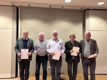 Freiherr von Richthofen (HR Melle), Klaus Kemming, Jürgen Riechert und Jürgen Strunk (alle HR Oldendorf). Auf eine 65-jährige Mitgliedschaft kann Werner Deppermann aus dem Hegering Riemsloh-Hoyel zurückblicken.