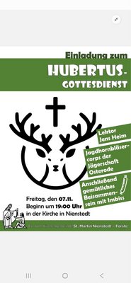 Einladung zum Hubertus-Gottesdienst in der Kirche in Nienstedt: