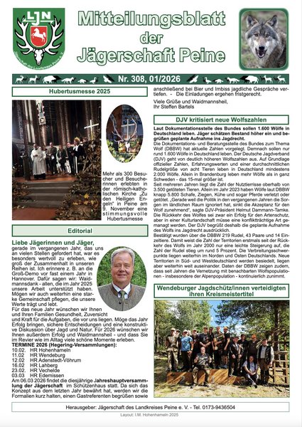 Das neue Mitteilungsblatt der Jägerschaft Peine steht hier als Download bereit.