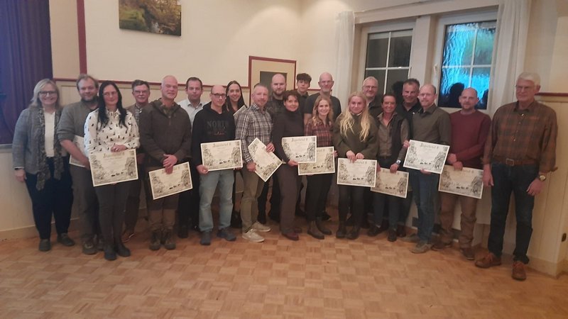 Die repräsentativen Jägerbriefe wurden im Anschluss von der Vorsitzenden Dinah Stollwerck-Bauer an den Jungjägerkurs 2024/2025 überreicht. Stollwerck-Bauer bedankte sich außerdem bei den in diesem Jahr erstmals aktiven Kitzrettern für ihren unermüdlichen Einsatz. Sie stellte fest, dass aufgrund der vielen Anfragen von Jagdpächtern eine weitere Drohne angeschafft werden konnte, um künftig noch mehr Flächen abdecken zu können.